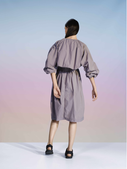 打褶无袖衬衫式连衣裙,几何褶裥,轻盈放松