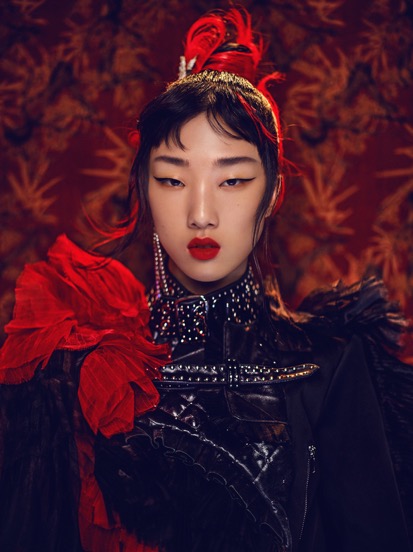 花木兰的妆容由火箭少女101队长YAMY演绎。M·A·C哑光唇膏#RUBY WOO赤兰色映衬出花木兰的正直刚烈,复古哑光质地彰显十足饱和度和高级感。炽烈红唇自动代入 “谁说女子不如男”的王者气概,一如游戏中长城守卫军队长——花木兰一般,瞬间化身巾帼英雄。闪泽桃润棕色与粉色带铬黄微闪的时尚焦点小眼影互相交融,一如冰霜轻抚眼周,光彩夺目。黑色M·A·C精准塑形眼线液笔清晰勾勒出的眼部线条,让整体妆容充满十足东方韵味。