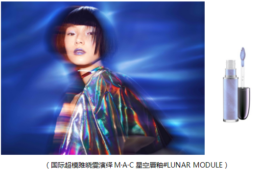 聚首灯光之下时,M·A·C魅可星空唇釉的闪耀星空蓝色LUNAR MODULE如同被点亮的美丽咒语一般,熠熠生辉。镜头下雎晓雯的妆容彰显了满满的未来科技感,释放多重华丽色彩,引领流行金属狂潮。幻光个性唇可以乖巧,也可以叛逆。纷繁多彩的的璀璨流光色任意选择,既可单擦又可混搭,满足玩妆天性。