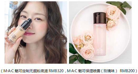 仙女和凡人的差别,就是在于脸上的那道光呀!而那道光正是奶油肌透出来的自然光泽感,M·A·C魅可定制无瑕粉底液帮你搞定!中高度的遮瑕力加上完美的持妆效果,奶油肌24小时完美呈现,即使夏天大汗淋漓也不怕完美底妆消失,再使用即将推出的M·A·C魅可保湿喷雾(玫瑰味),妆后喷一下定妆缩水,妆前使用醒肤提神,玫瑰香气让肌肤如同在 SPA 般的享受,带香气的肌肤一定是仙女了!