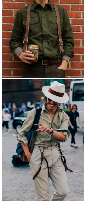 随着时间的变迁,现在一些皮质的金属扣背带,成为了阿美咔叽等复古圈子的流行单品。