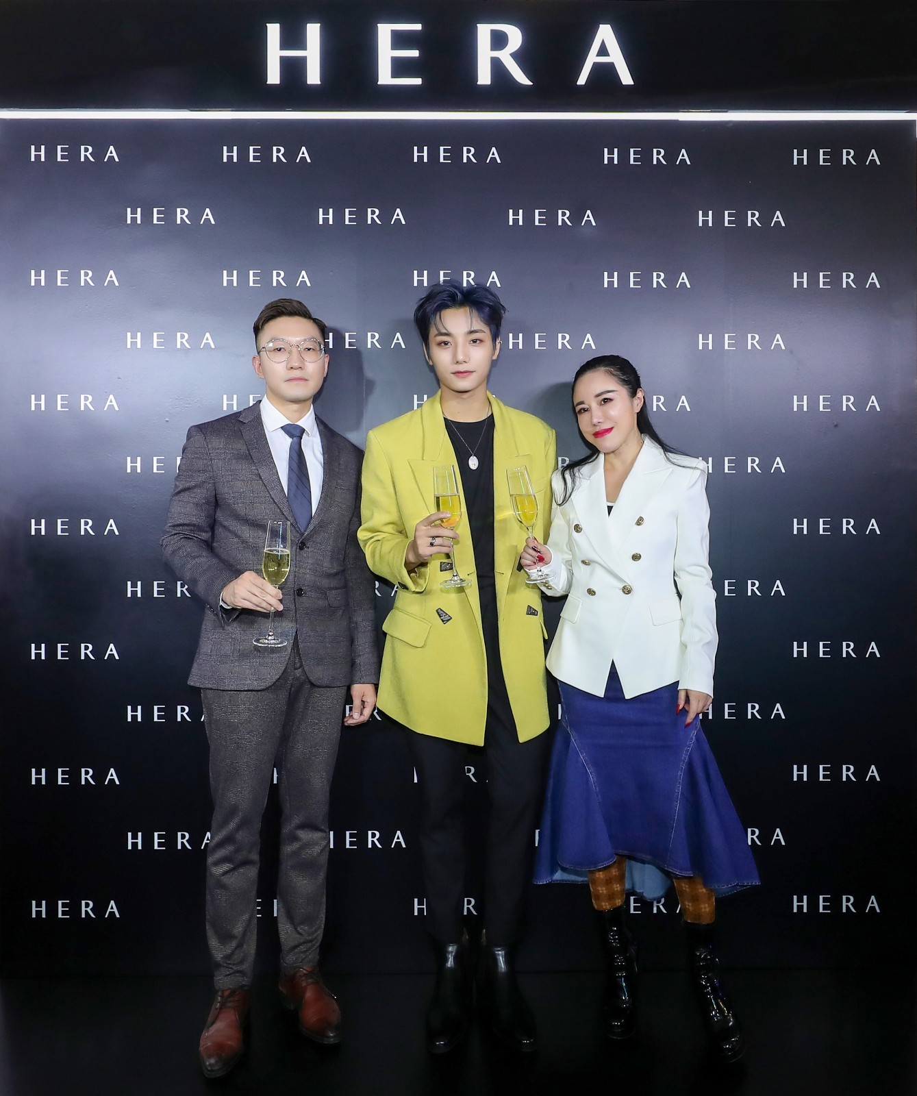 (从左至右,依次为爱茉莉太平洋集团HERA赫妍市场部经理石东明先生、HERA赫妍底妆大使李振宁先生、德基广场行销总监许婷婷女士)