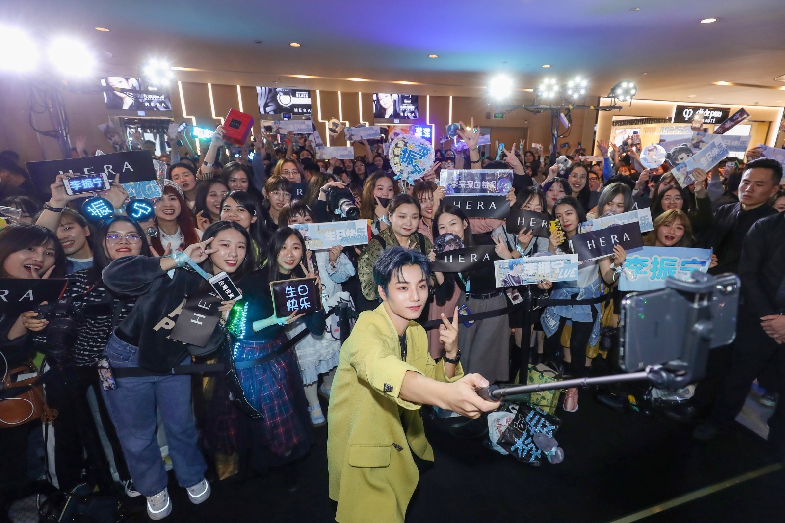 11月4日下午,正能量偶像UNINE李振宁作为HERA赫妍品牌底妆大使首度现身于南京德基广场B1中庭,与现场粉丝一同开启“振”正底妆实力。