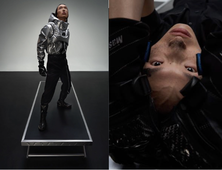 通过视觉语境和产品的交流、融通,这四段故事影片以直截了当的可视化方式展现品牌的近未来美学主张;而另一方面,UENS也希望借此展现人和技术、理想...... 之间的矛盾与平衡,与观众产生共情体验,以激发更丰富的联结与思考。因此,特别为在21秋冬上海时装周“时堂”showroom的展出特别制作了空间装置“冥想公交站台”,以影像多媒体艺术展示全新以及完整的影片。