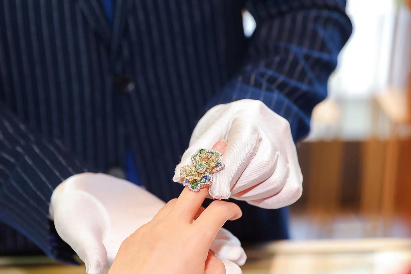 本次展览中,黛琳珠宝的Colorful 系列和设计单品「小荷」「铿锵玫瑰」等颇受关注,它们更多运用大自然的植物为创作灵感,精选各类彩色宝石,结合与众不同的创意设计,最终以匠心独运的工艺将自然的朝气蓬勃与绚丽多彩将作品表达出来。