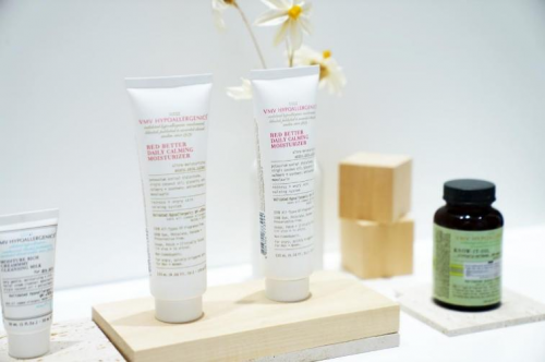 在美博会上,VMV重点展示其不含109种已知潜在致敏成分的产品,吸引了大量参展者驻足探索,激发了广泛关注与兴趣。值得一提的是,VMV致力于抗敏护肤领域的研究,在过去30年中,其产品的过敏反应率不到0.1%。作为唯一验证低过敏性的品牌,VMV基于北美接触性皮炎组织和欧洲接触性过敏监测系统,发布了VH-评级系统,这是第一个也是唯一一个低过敏性评级系统,使得产品更具说服力。