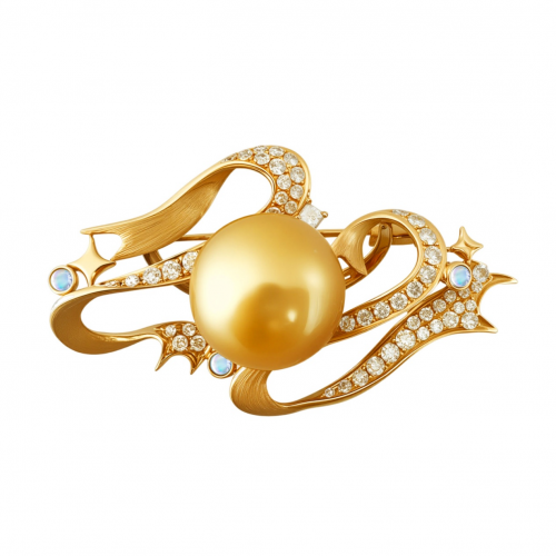 在材质的甄选上,作品亦是独具匠心。丝带间镶嵌着一颗超过13毫米的南洋金珠,温润华贵,犹如皓月当空。周围辅以53颗璀璨钻石与数颗素面月光石,共同演绎了一场“星月交辉”的宇宙诗境。在工艺上,设计师采用了精湛的意大利手工拉丝技术,赋予了坚硬的贵金属丝绸般细腻柔和的肌理,而光金留白之处则巧妙地暗合了中国传统水墨画的写意神韵。