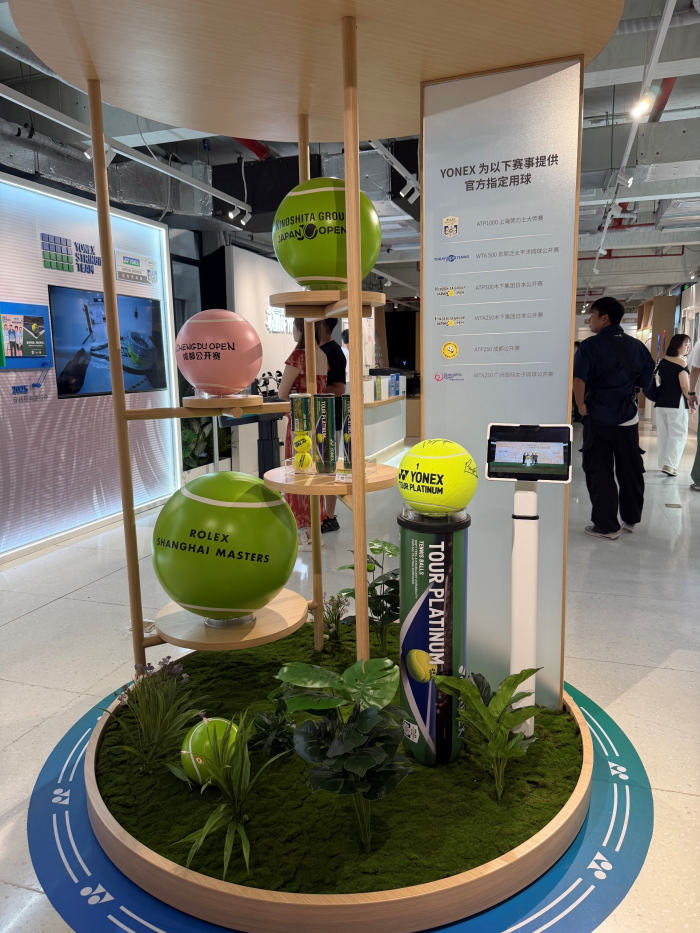 一楼中庭,ATP1000上海劳力士大师赛、WTA500东丽泛太平洋网球公开赛、ATP500木下集团日本公开赛等系列大型赛事的官方指定用球,品牌方用夸张比例制成的大型艺术装置着实吸睛,友友们看到必然“哇”不绝口。