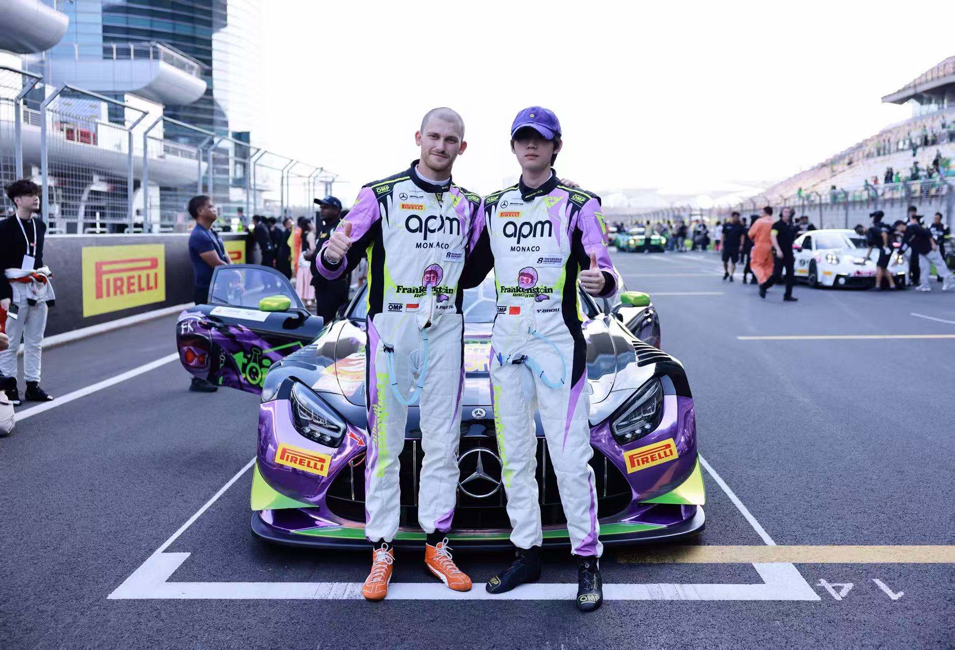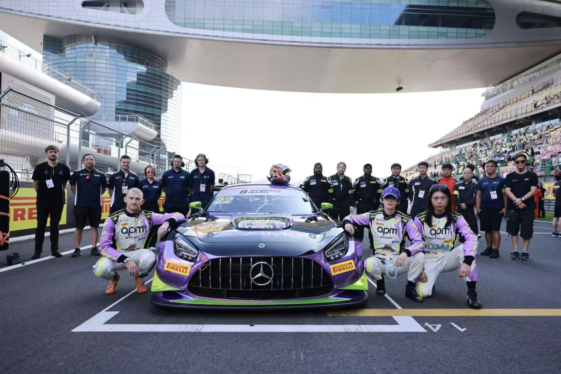 在Craft-Bamboo Racing车队的专业支持下,22号车组展现了卓越的团队协作能力。从练习赛到正赛,车组始终保持稳定的发挥,在高速过弯与策略调整中,将平衡与应变能力巧妙呈现。周翊然作为亚太区品牌形象大使,再次以赛车手身份亮相专业赛事,他在赛道上专注投入的表现与APM Monaco所倡导的突破自我精神高度契合。