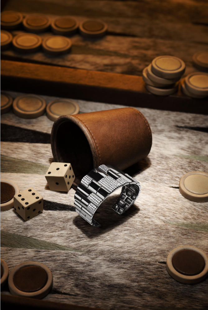 穿过罗马城赭石色的黄昏,足底与“I San Pietrini”(圣彼得石)的触感跨越千年而来——这些由火山岩雕琢而成的铺路石,以不规则的几何形态镶嵌出古城的脉络,既是历史的见证者,亦是永恒的设计图腾。APM Monaco从这一承载着文明重量的罗马街道路面中采撇灵感,将石板粗粝的轮廓提炼为干净利落的切面,让岩浆凝固的瞬间化作金属冷冽的光泽,打造出既前卫又典雅的Automne系列,契合欣赏经典传承且兼具现代风格融合的摩登爱好者。