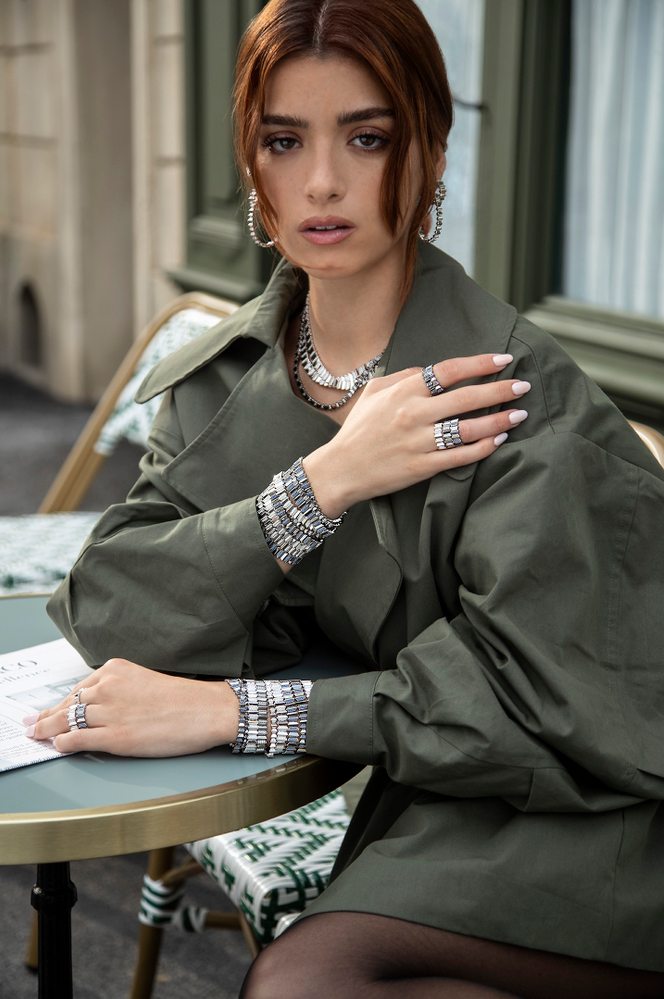 APM Monaco深谙珠宝作为“第二层肌肤”的使命与当代生活的场景流动性,此次秋季系列以“无界适配性”重构珠宝与时间的关系。从晨间会议室的玻璃幕墙折射金属冷光,到午夜酒廊里流转的暖调霓虹,每件作品都在光影交替中实现风格转化:锐利的几何线条可借叠戴产生蒙太奇般的错视效果。