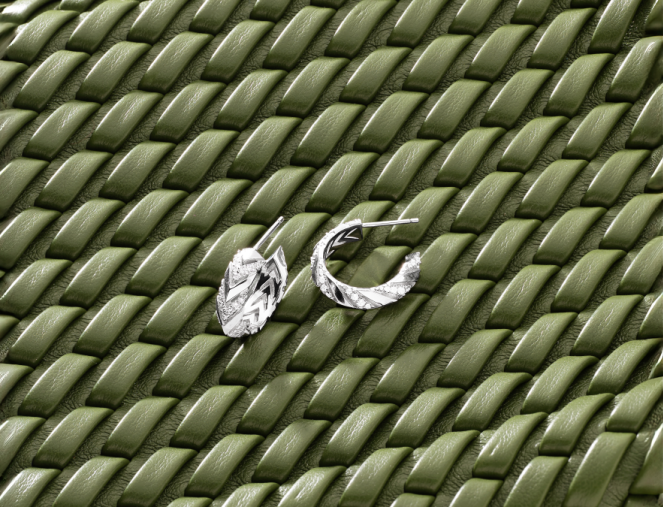 全新秋季系列珠宝以建筑细节的精准度重新解构几何美学:耳饰以不对称镶嵌诠释动态平衡,个性密镶戒指通过层叠结构复刻I San Pietrini”(圣彼得石)不规则拼贴的韵律感,而链条设计暗喻着时间在物质表面蚀刻的痕迹。这种对经典与当代风格共生的探索,恰如现代都市人在历史遗产与先锋意识之间的行走——既需要文明积淀带来的安全感,又渴望挣脱框架的创造性表达。