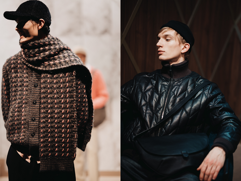 轻盈、精裁——以CANALI的非凡制衣工艺为基础,轻便和质感成为廓形柔软、动感的关键所在。Bouclé羊毛、带扣设计和多尼戈尔粗花呢合力打造出三维立体感;“Freccia”箭头图案在皮革外套的绗缝和细节上作为设计元素呈现。皮革饰边点缀科技面料外套;材质搭配别出心裁,舒适与奢华兼备,让绅士造型轻松应对多变场景。