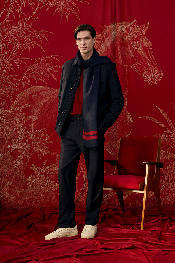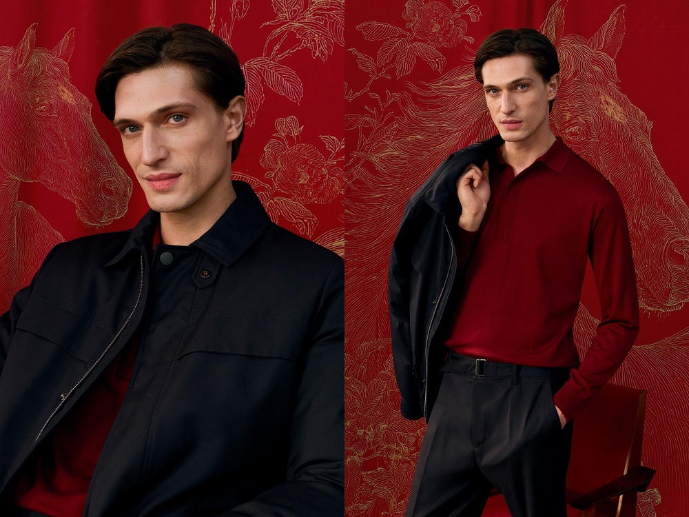 CANALI 2026新春胶囊系列大片将节日礼赞转化为精致的视觉叙事——“红”为背景,传统上象征着兴盛、生机与祥瑞;“马”则作为艺术意象,描绘着当代绅士的谦和自信与内心笃定。从中获得灵感之余,CANALI也在这一全新起点,将相通的价值理念欣然呈现:恪守本真,任重致远,向新而行。