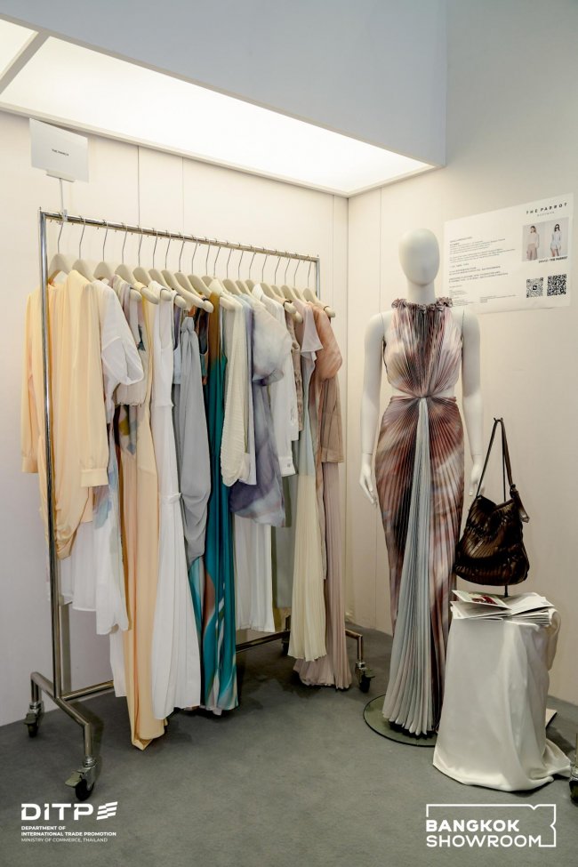在成衣领域,本次参展品牌呈现出泰国时尚的多元维度。CHER'Z则以精致剪裁与优雅礼服见长,用细腻工艺诠释当代女性的柔美与力量;MUJIL从世代传承的编织传统中汲取灵感,以现代设计重新诠释泰国传统织物,让其成为可穿戴的文化艺术;SIRAPOP以创新工艺重塑面料结构,在力量与柔美之间探寻当代女性的着装表达;THE PARROT扎根曼谷,致力于打造从日常到夜幕皆宜的独立女装,与现代女性的时尚步伐同频共振;TARMAFIA以街头奢华与旧物再造为核心,将废弃衣物转化为承载态度与故事的手工孤品,重新定义可持续时尚的审美可能。