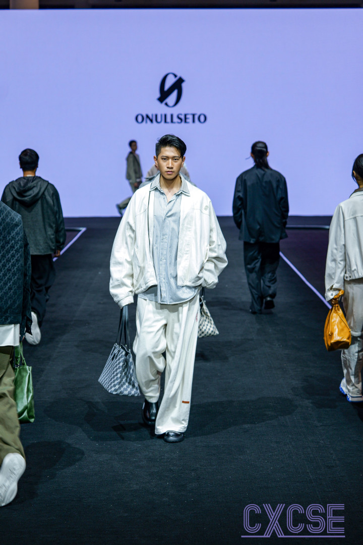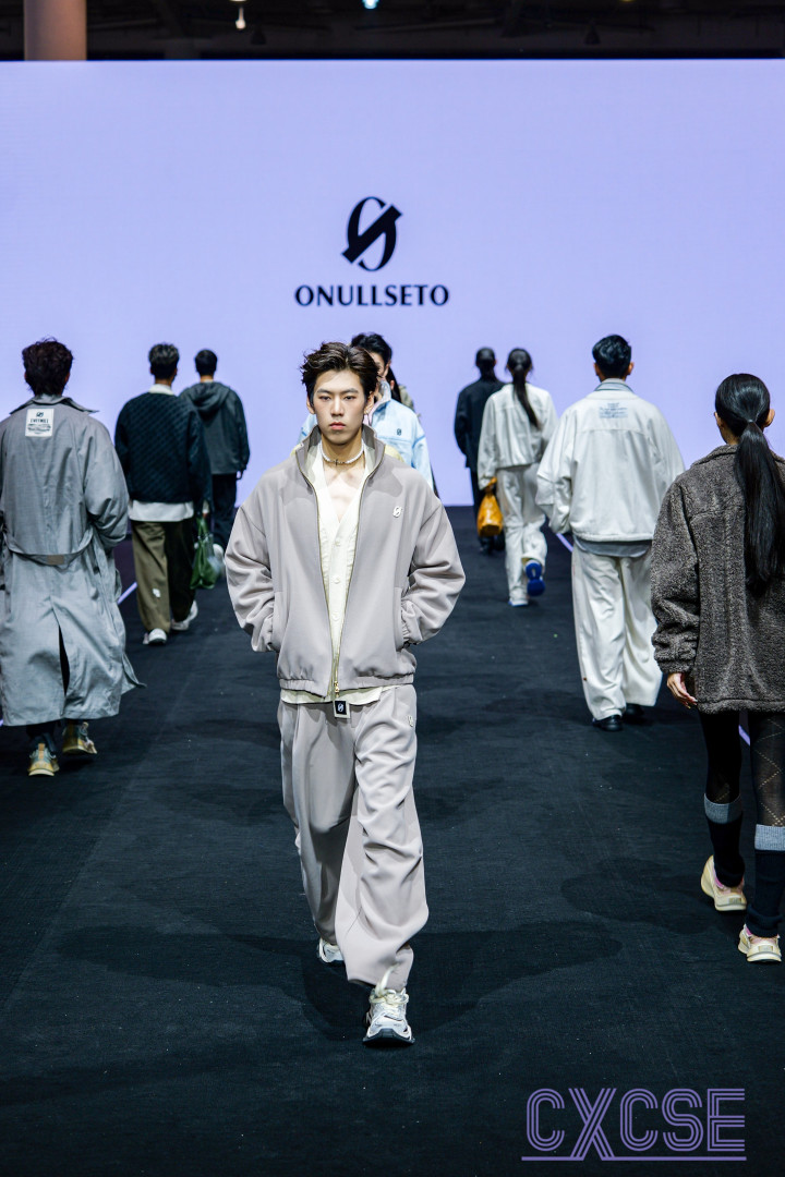 本次发布会紧扣展会“链接供应链、引领新时尚”的核心宗旨,延续ONULLSETO品牌一贯的设计基因,以精简线条与高品质面料为基调,着力营造松弛自在的穿着氛围,续写品牌新季时尚篇章。秀场之上,模特们以从容松弛的姿态穿梭其间,步履轻盈,褪去多余修饰,每一款造型都传递出不张扬、不刻意的穿搭态度。